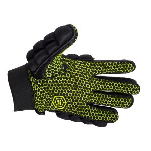 Deze hockey handschoen met klittenbandsluiting biedt optimale flexibiliteit en bescherming. De handschoen is voorzien van stevige padding op de bovenhand en beschermt de gehele vingers, inclusief de duim. In de handpalm bevat de handschoen siliconen nopjes voor een uitstekende grip. De handschoen is geschikt voor de linkerhand en wordt per stuk verpakt.
